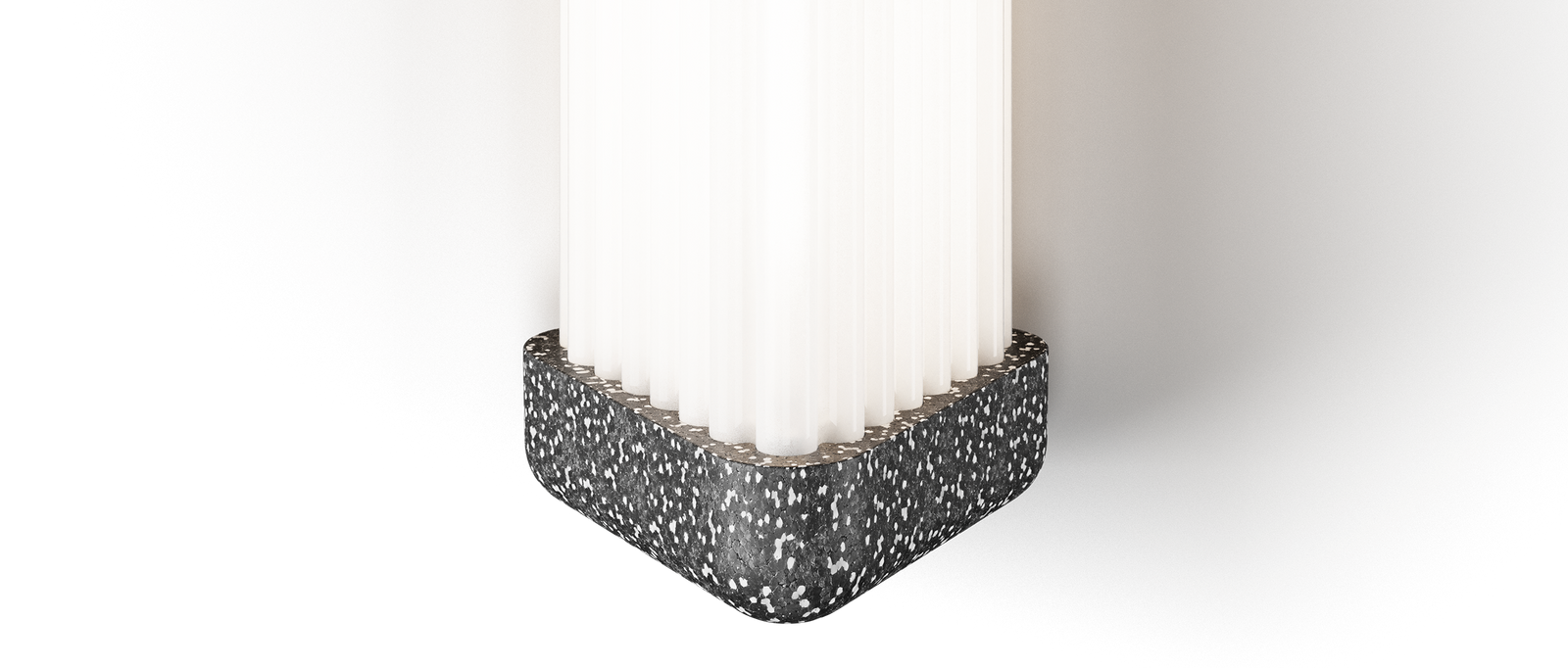 C’est une retraite en douceur qui est donnée à ces tubes obsolètes, puisqu’ils jouent uniquement le rôle d’abat-jour afin d’adoucir la lumière des tubes leds nouvelle génération placés au centre de la lampe.